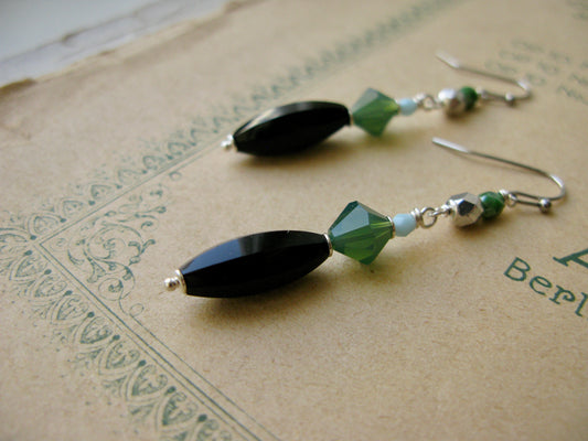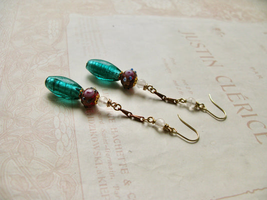 Venetian Garden long earrings in emerald green