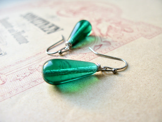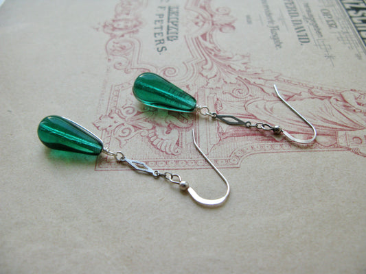 Venetian Garden long earrings in emerald green