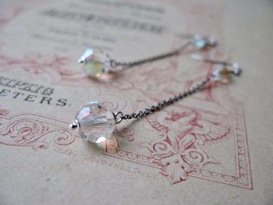 Old Hollywood crystal drop long earrings in clear a/b