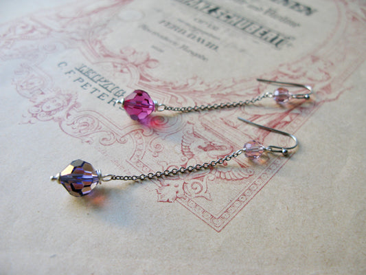 Old Hollywood crystal drop long earrings in hyacinth