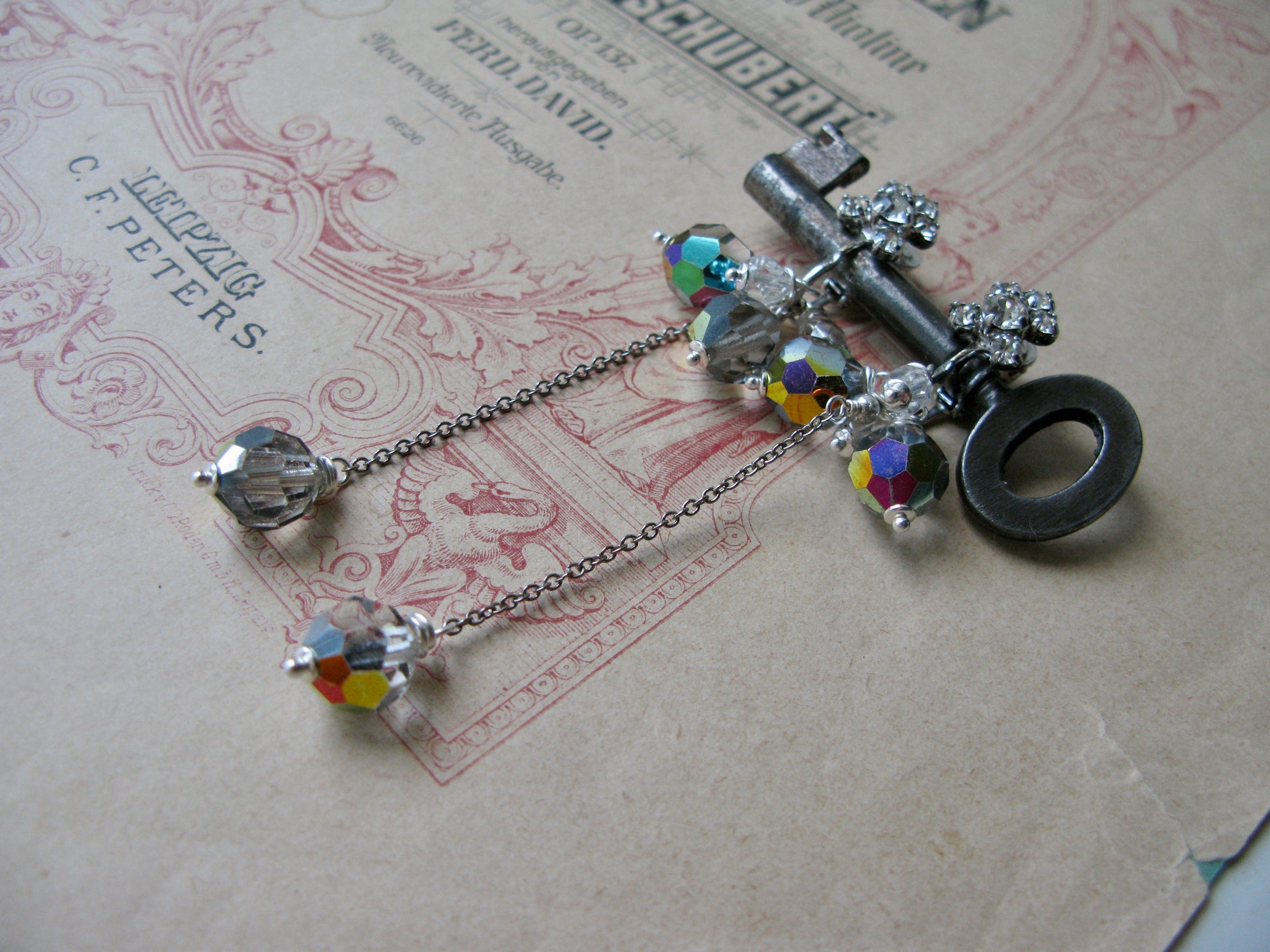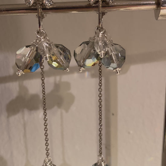 The sleek steel chain is also unused vintage and the beads are attached on gorgeous, clear crystal studded vintage (again, new old stock, never before used) clip-ons. Very comfortable on the ear and they sparkle so elegantly!