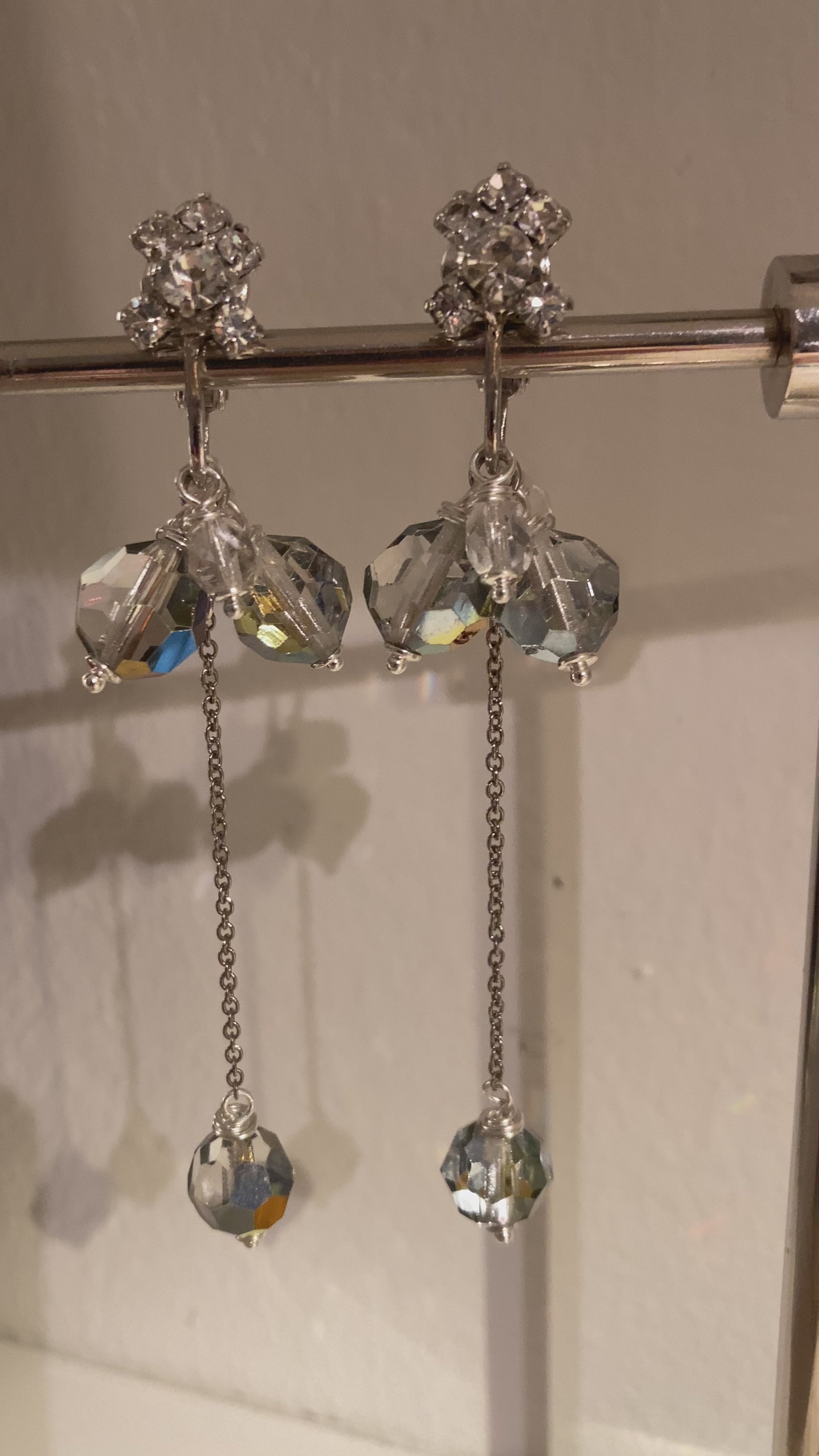 Old Hollywood crystal drop clip-on earrings in vitrail