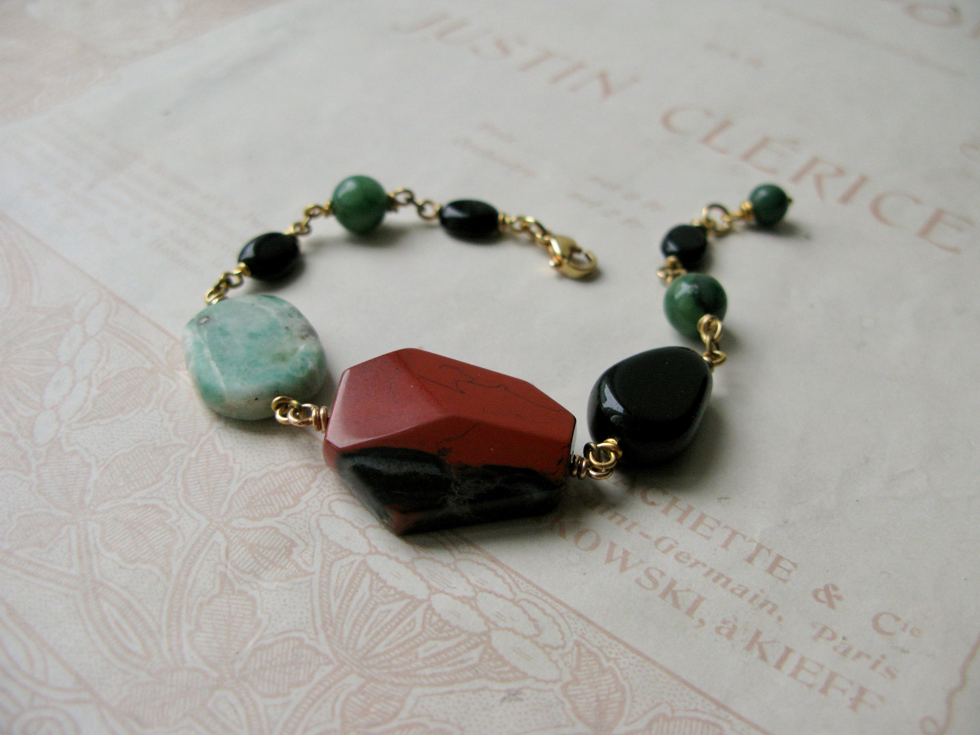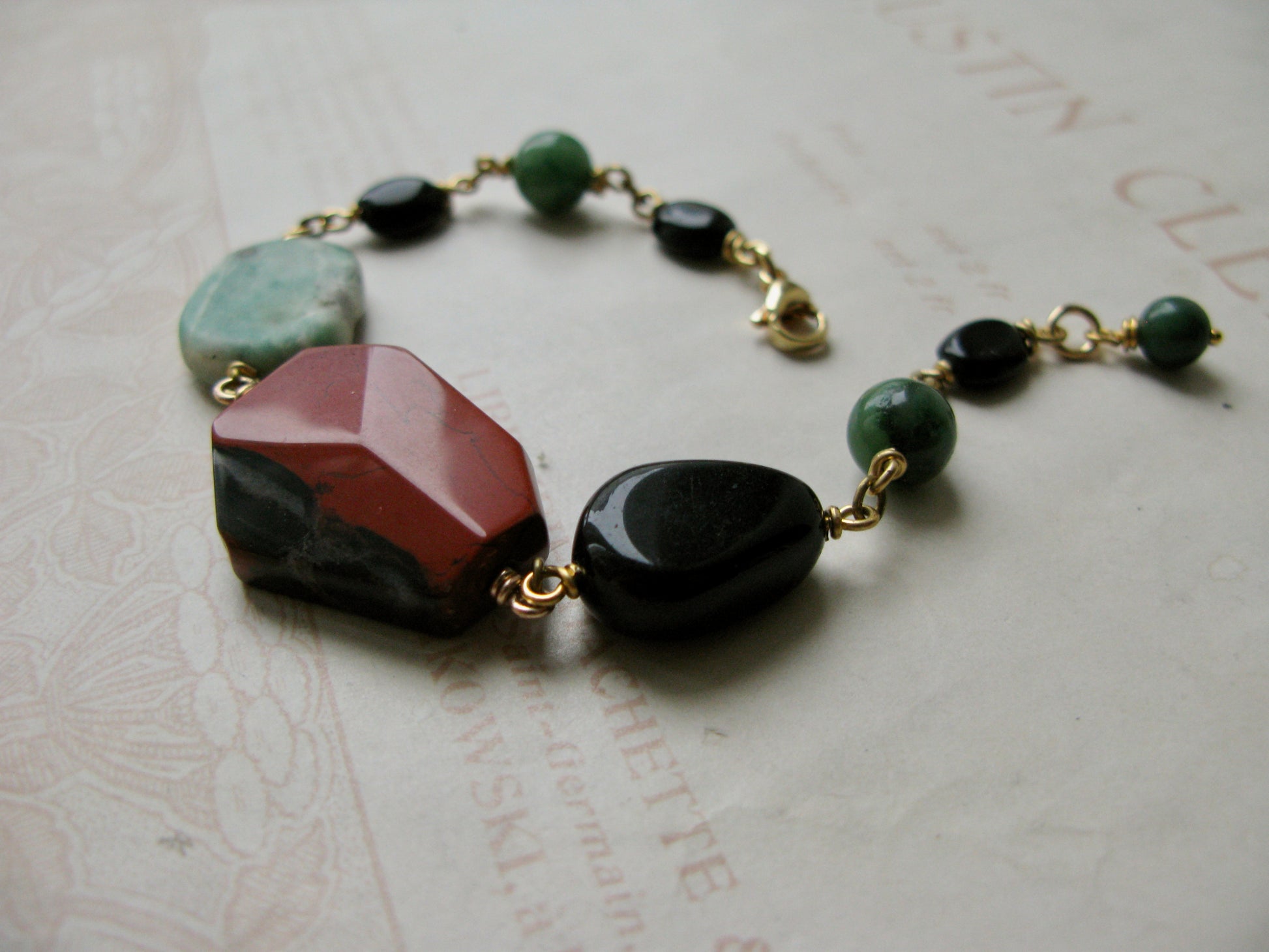 On this palette you'll find beautifully patterned jasper, blackstone and African jade gemstones.