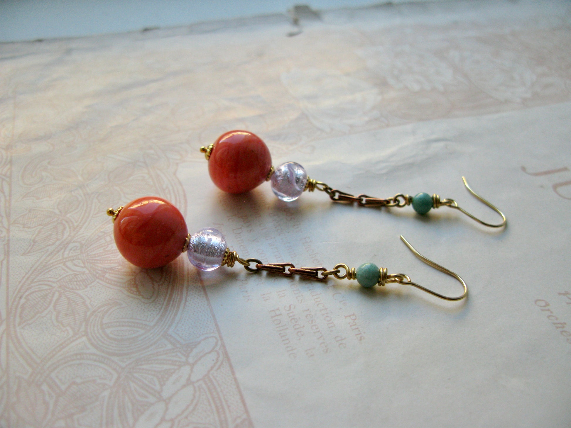 These Secret Garden earrings feature absolutely delicious Venetian Murano glass baubles and green calcite stones. The largest (15mm diameter) bauble beads are rare vintage all the way from the 1930s. I found them from a little shop in Venice last year, from an elderly lady who had a stunning collection of vintage Murano beads and she knew everything about them!
